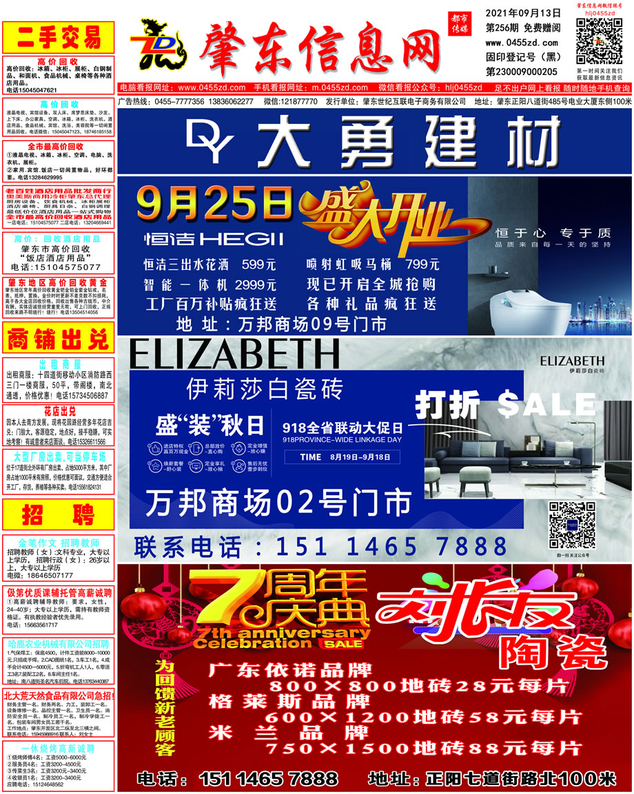 肇東信息網(wǎng)DM報紙2021年9月13日第256期
