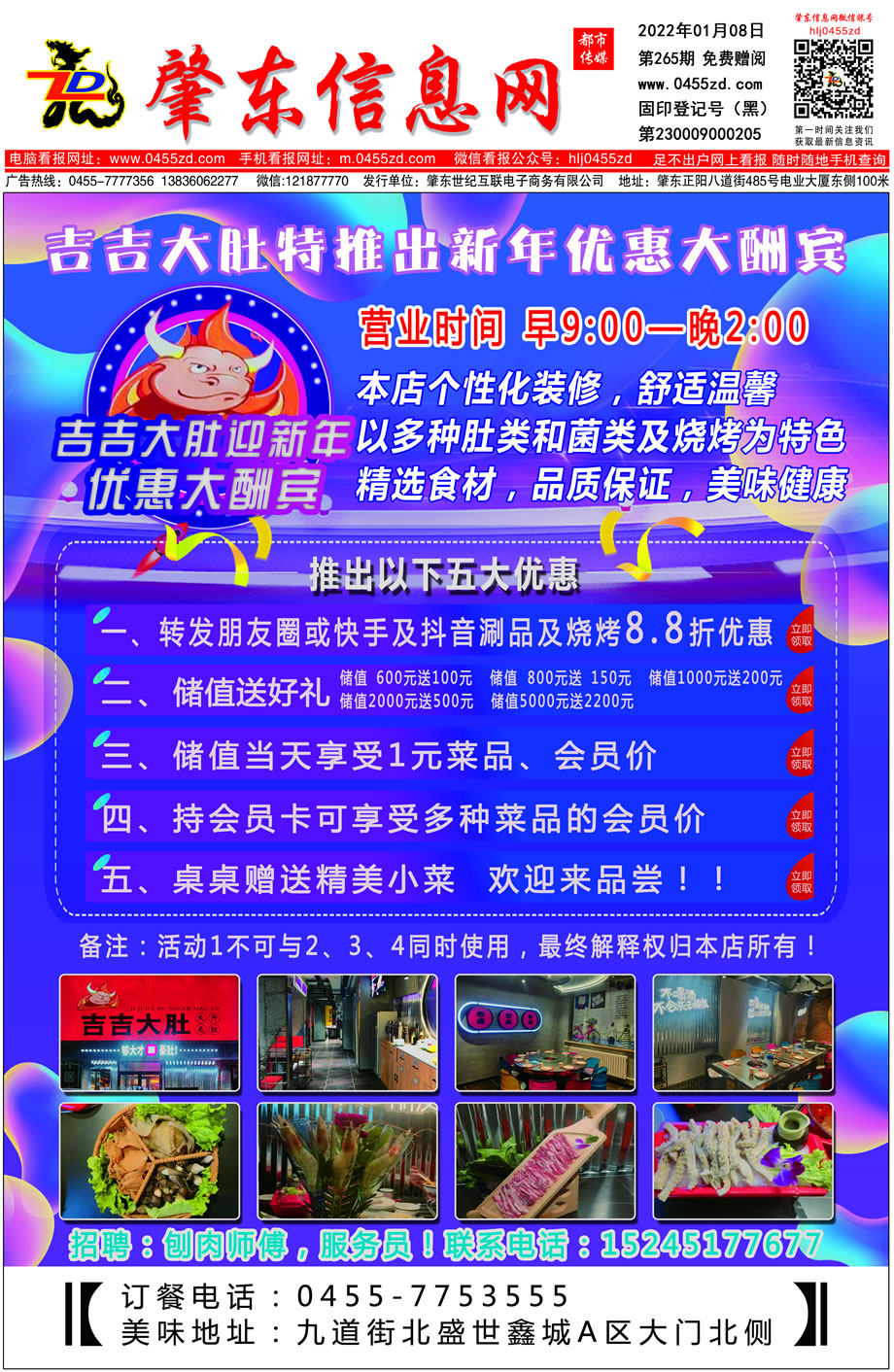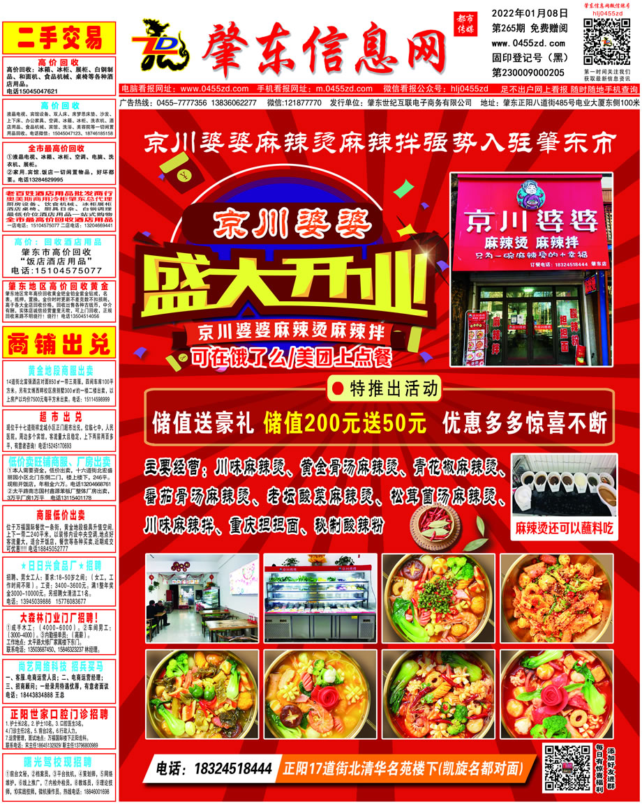 肇東信息網(wǎng)DM報(bào)紙2022年1月8日第265期