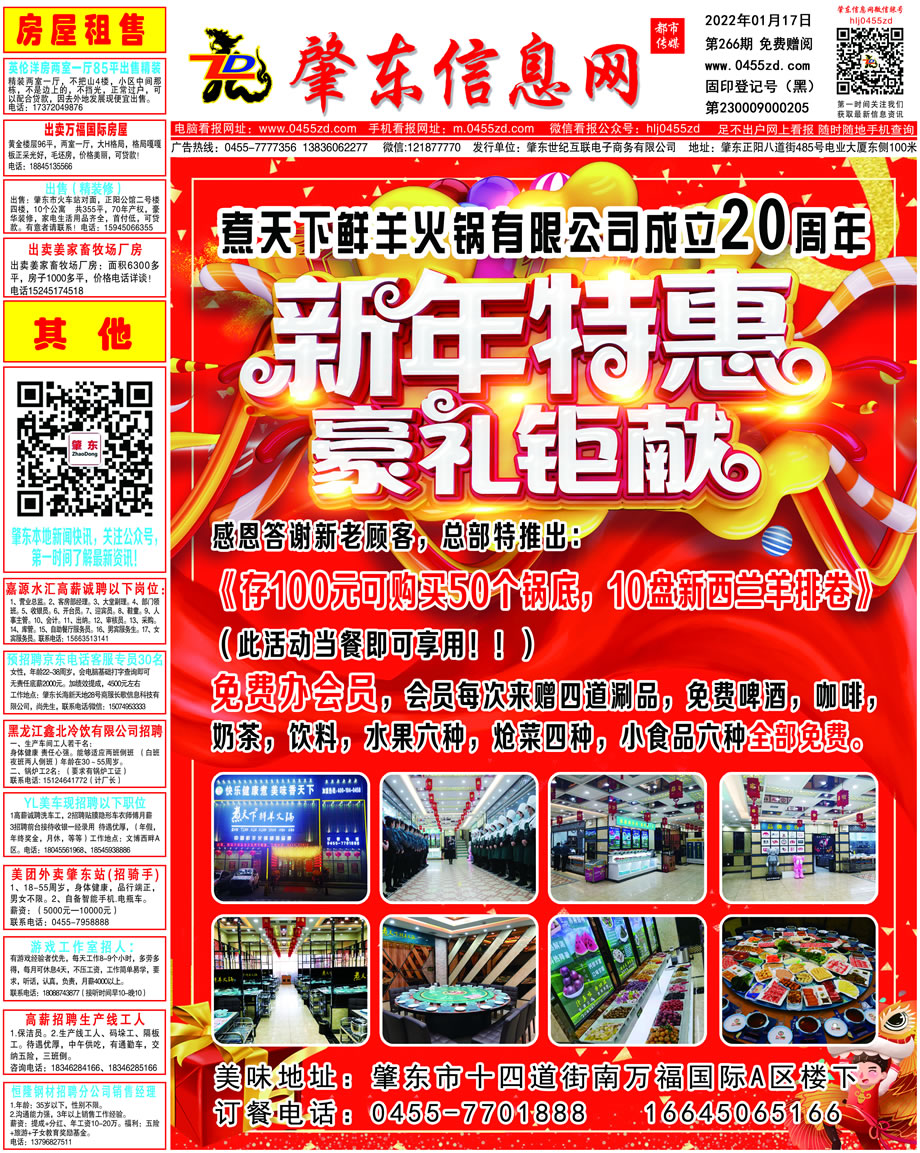 肇東信息網(wǎng)DM報紙2022年1月17日第266期