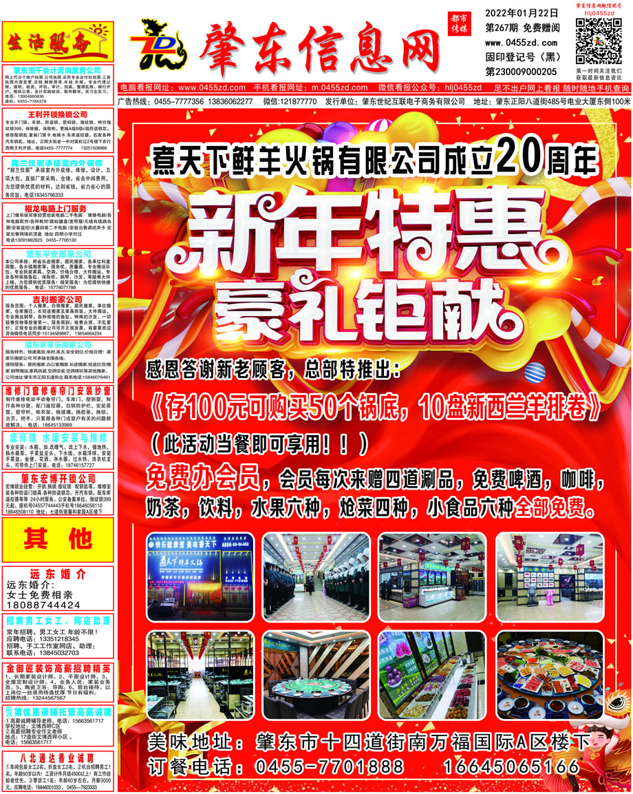 肇東信息網(wǎng)DM報(bào)紙2022年1月22日第267期