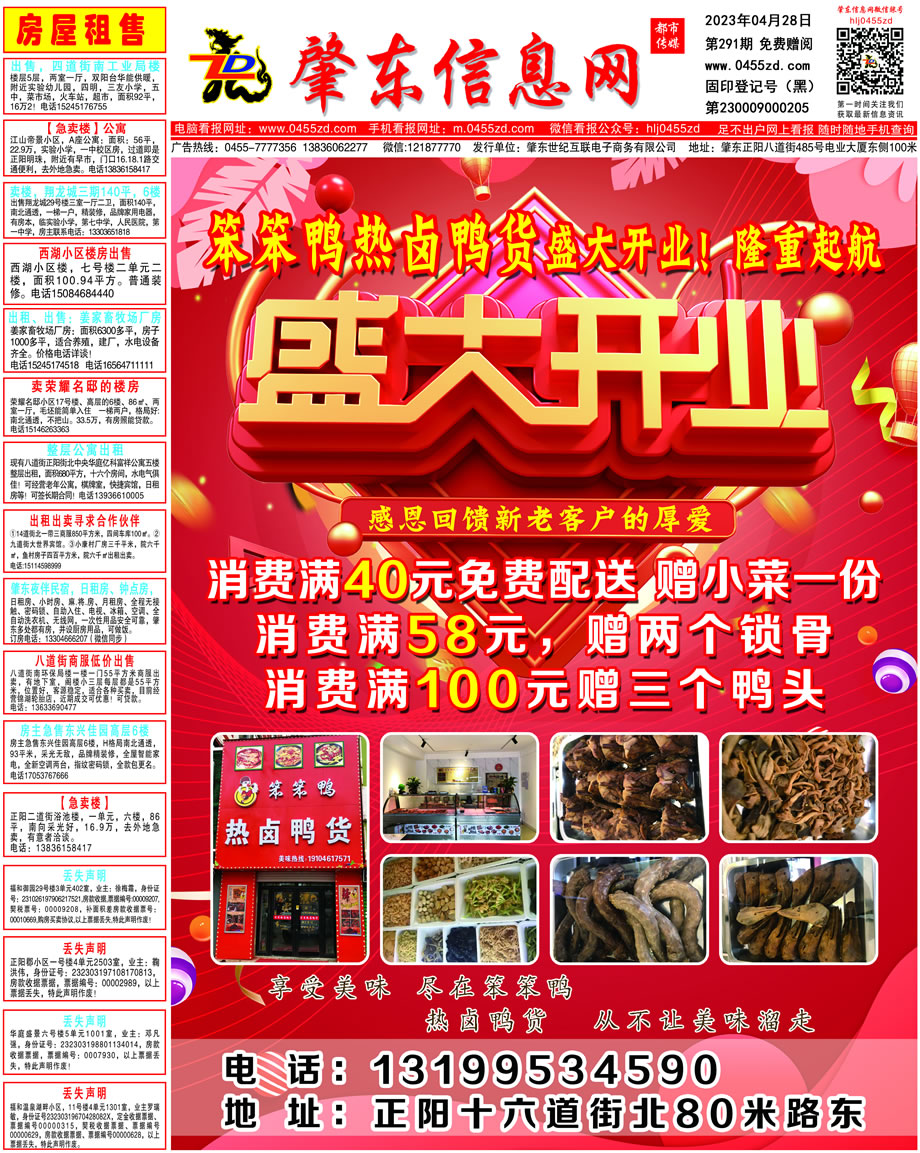 肇東信息網(wǎng)DM報(bào)紙2023年4月28日第291期