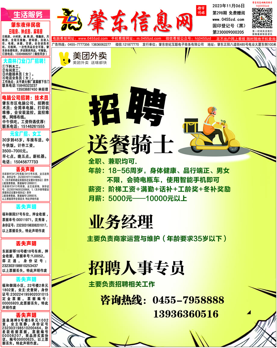 肇東信息網(wǎng)DM報(bào)紙2023年11月6日第298期
