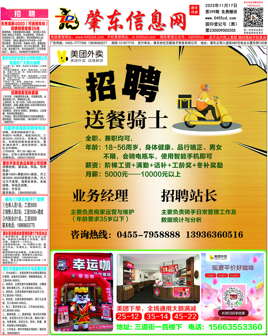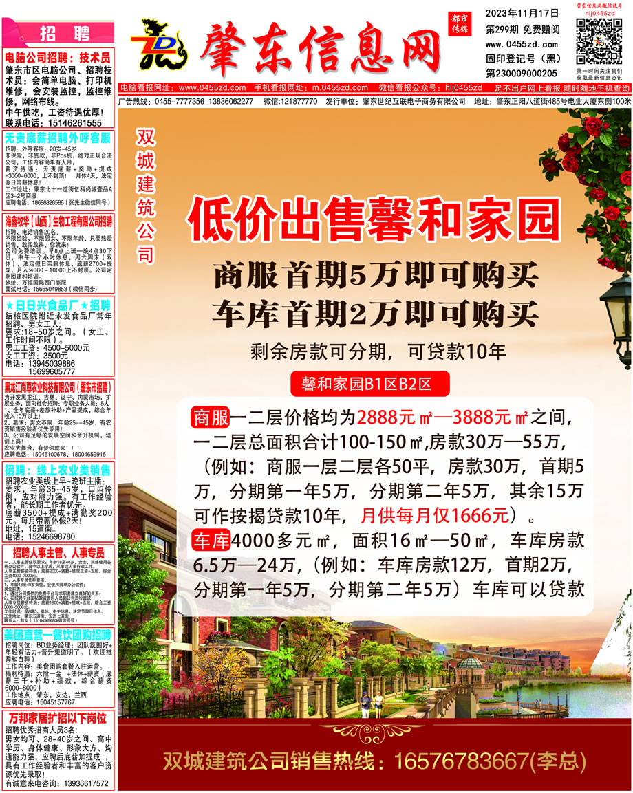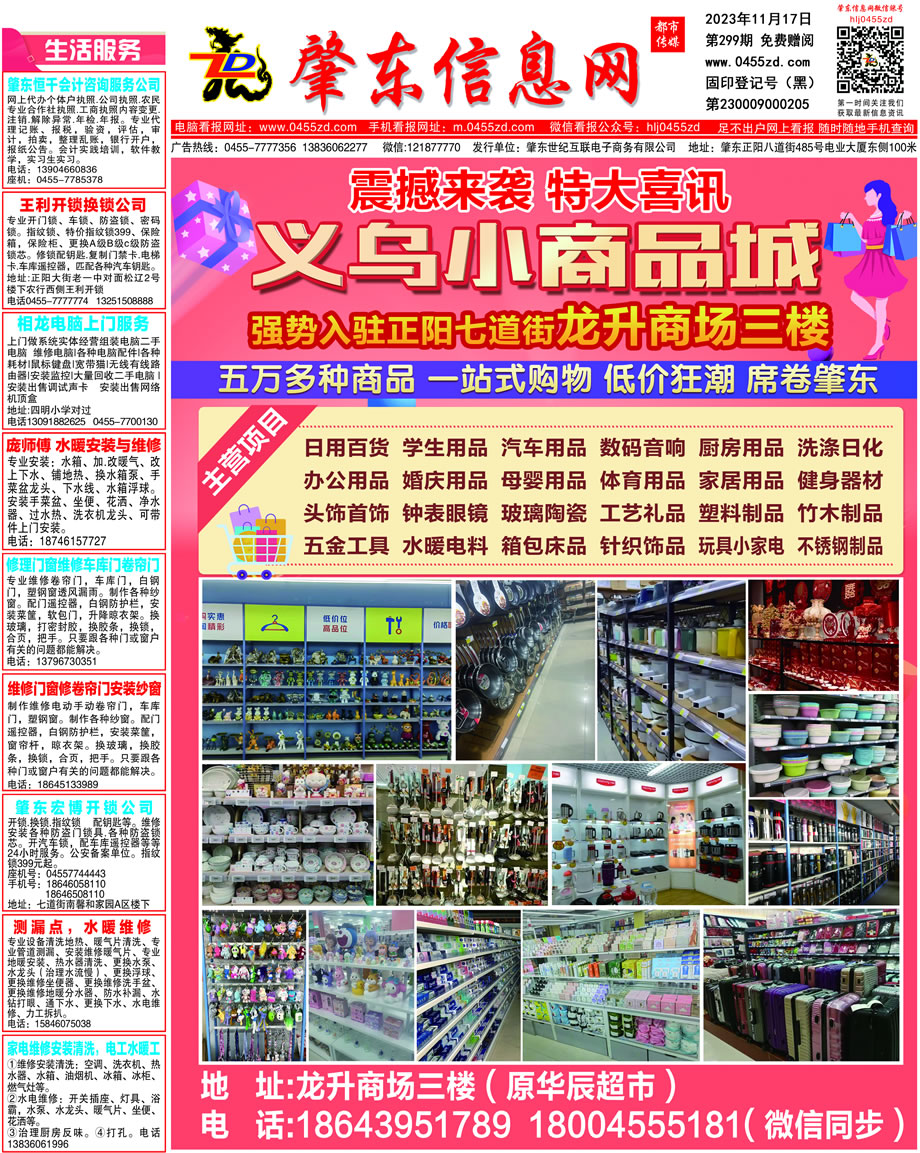 肇東信息網DM報紙2023年11月17日第299期