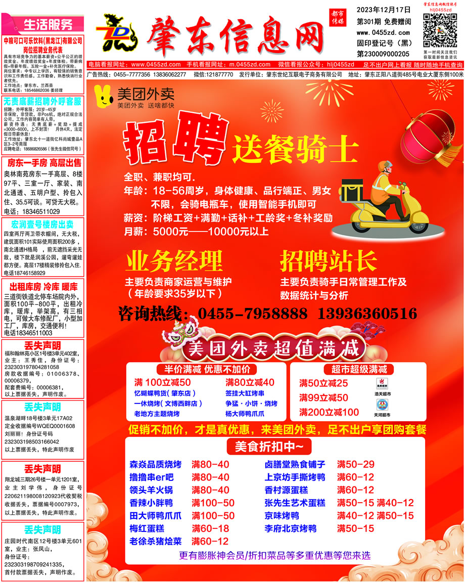 肇東信息網(wǎng)DM報紙2023年12月17日第301期
