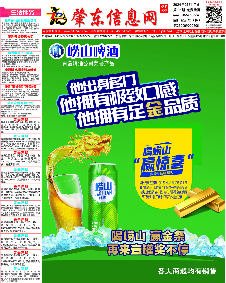 肇東信息網(wǎng)DM報(bào)紙2024年5月17日第311期