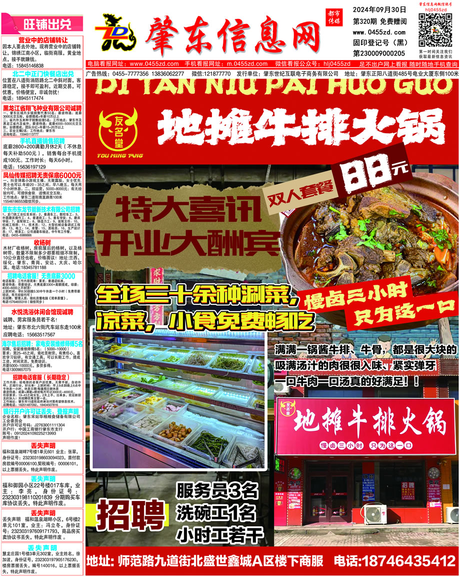 肇東信息網(wǎng)DM報紙2024年9月30日第320期