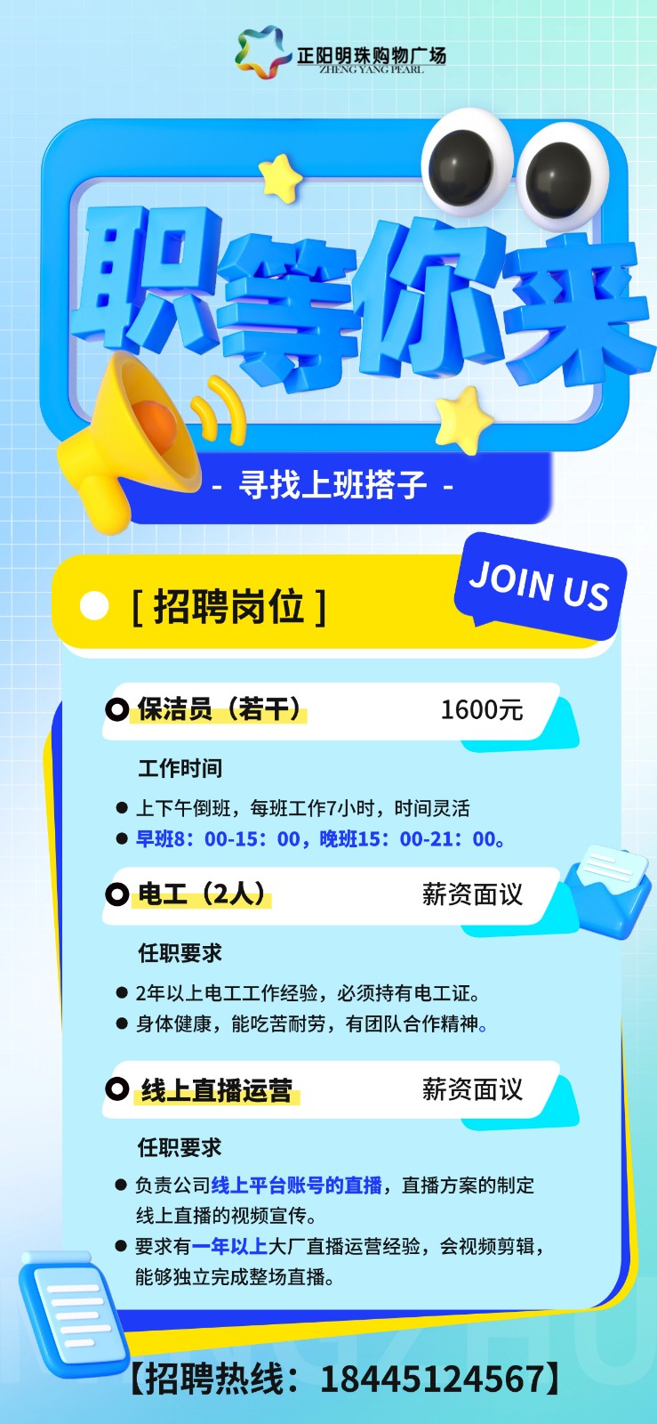 當前位置:首頁 > 招聘求職 > 招聘 > 正陽明珠購物廣場招聘