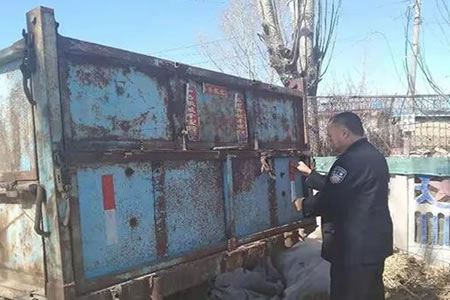 肇東躍進派出所為轄區(qū)農(nóng)用車輛粘貼反光標識