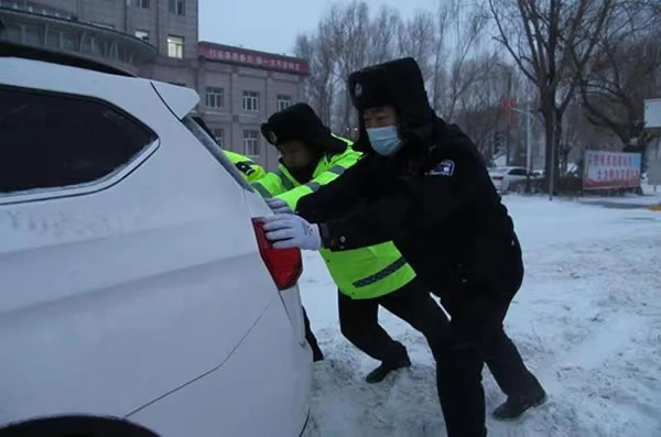 暴雪面前 肇東交警齊出動 疏堵保暢不放松