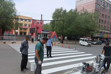 肇東市公安局交警大隊(duì)在交通流量大路口施劃隆聲帶