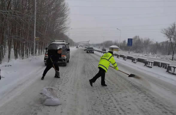 | 11月7日至今肇東轄區(qū)連續(xù)普降大雪風(fēng)雪中執(zhí)勤民警持續(xù)奮戰(zhàn)在路面一線護(hù)衛(wèi)著群眾出行平安針對(duì)暴雪+凍雨+道路結(jié)冰狀況提醒廣大駕駛員謹(jǐn)慎慢行保持安全車距,注意行車安全... |