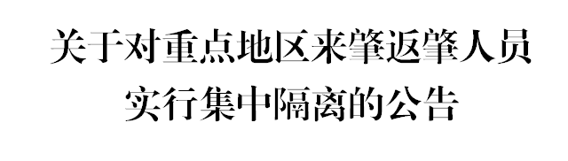 關(guān)于對重點地區(qū)來肇返肇人員實行集中隔離的公告