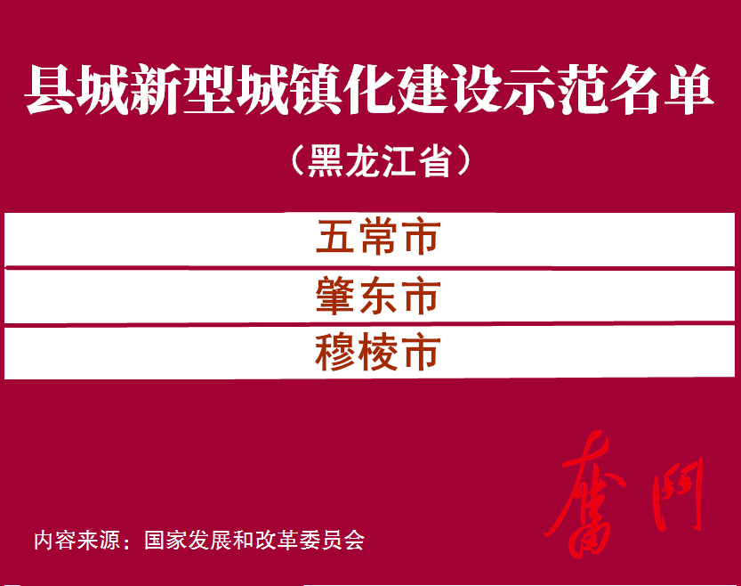 近日,國家發(fā)改委印發(fā)《國家發(fā)展改革委關(guān)于加快開展縣城城鎮(zhèn)化補短板強弱項工作的通知》,提出選擇120個縣及縣級市開展縣城新型城鎮(zhèn)化建設(shè)示范工作,黑龍江省3縣市入選!