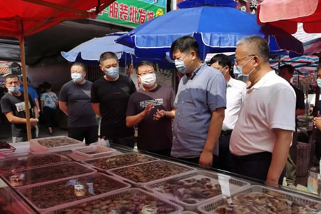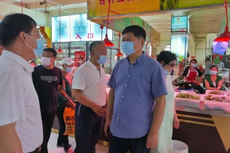 在陽(yáng)光農(nóng)貿(mào)市場(chǎng),田宇副市長(zhǎng)要求陽(yáng)光農(nóng)貿(mào)市場(chǎng)監(jiān)管分局和市場(chǎng)開辦者高度重視疫情防控工作,持續(xù)做好防控措施的落實(shí)。針對(duì)人員流動(dòng)量大的特點(diǎn),要抓好衛(wèi)生管理,保持市場(chǎng)內(nèi)通風(fēng)良好,強(qiáng)化消殺措施。切實(shí)提高場(chǎng)內(nèi)攤床經(jīng)營(yíng)者的疫情防控意識(shí),經(jīng)營(yíng)者之間保持安全距離。
