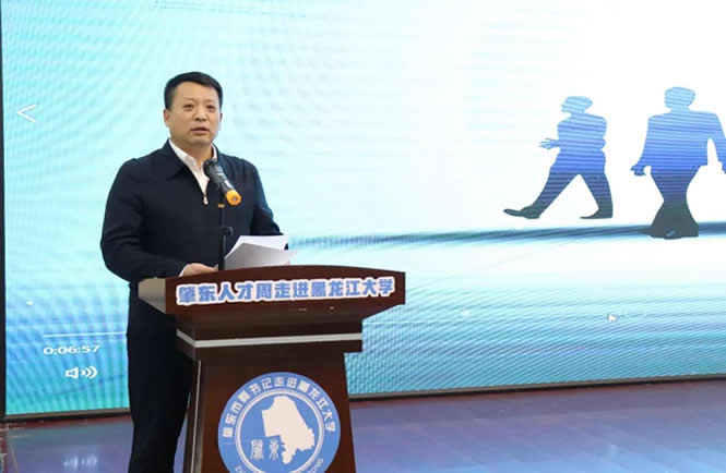 宣講中,張偉志高度評價了黑龍江大學(xué)多年來取得的優(yōu)異成績,并代表肇東市委、市政府,向一直以來關(guān)心關(guān)注支持肇東發(fā)展建設(shè)的學(xué)校領(lǐng)導(dǎo)、老師致以崇高敬意,向志存高遠、積極進取的學(xué)生們致以誠摯問候。