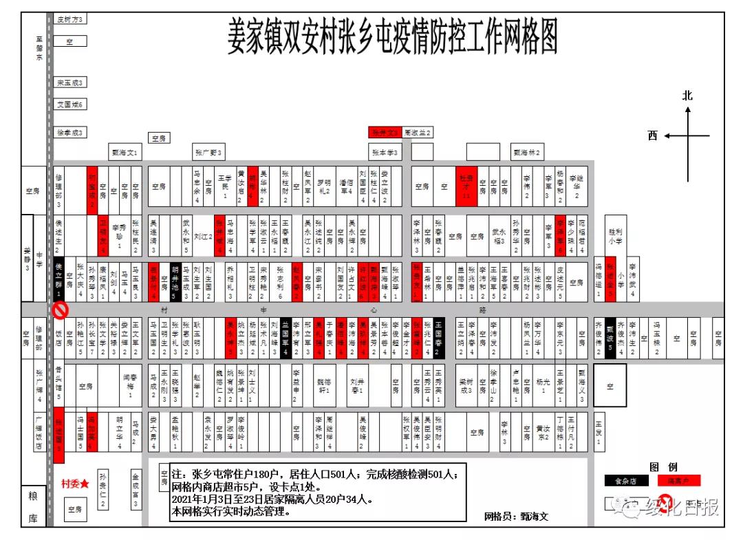 在姜家鎮(zhèn)其它村屯也同樣都掛上了這樣的網(wǎng)格圖。自疫情防控工作以來,姜家鎮(zhèn)統(tǒng)一繪制疫情防控工作網(wǎng)格圖,用網(wǎng)格圖織密“防控網(wǎng)”,以精細(xì)化的網(wǎng)格管理來準(zhǔn)確掌握重點人員變化情況,達(dá)到管控信息準(zhǔn)確、指揮反應(yīng)快速、措施防控嚴(yán)密,讓防控部署上墻又上心。