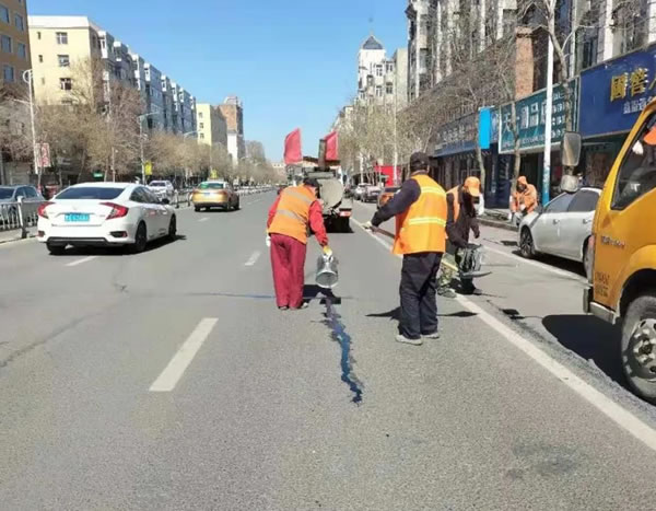 養(yǎng)護人員用吹風(fēng)機將裂縫中灰塵和雜物吹凈,然后將熱熔后的密封膠注入裂縫中,冷卻后恢復(fù)交通。專業(yè)技術(shù)人員跟班作業(yè),全程指導(dǎo)施工,狠抓清縫、灌注等關(guān)鍵環(huán)節(jié),做到清縫徹底、灌縫飽滿、路面整潔、線條美觀,把“精細(xì)養(yǎng)護”理念貫穿工作始終,確保路面養(yǎng)護質(zhì)量。