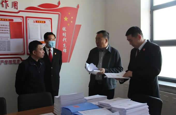 在肇東法院隊(duì)伍教育整頓領(lǐng)導(dǎo)小組辦公室檢查指導(dǎo)中, 劉昭業(yè)一行詳細(xì)聽(tīng)取了黨組書(shū)記、院長(zhǎng)王鐵軍關(guān)于隊(duì)伍教育整頓工作的匯報(bào)。仔細(xì)翻閱了我院隊(duì)伍教育整頓工作的相關(guān)材料,逐項(xiàng)查閱了隊(duì)伍教育整頓宣傳情況、學(xué)習(xí)教育日程安排、日常工作臺(tái)賬等材料,逐項(xiàng)查閱了我院隊(duì)伍教育整頓工作開(kāi)展情況,并對(duì)肇東法院充分利用資源,營(yíng)造向社會(huì)正面宣傳、開(kāi)門(mén)搞教育整頓的濃厚氛圍給予肯定。