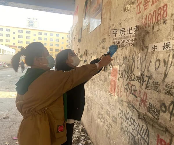 4月28日上午,市婦聯(lián)副主席宮麗紅、市婦兒辦副主任于倩共五名干部到包聯(lián)的果菜小區(qū)開(kāi)展清除小廣告志愿服務(wù)。