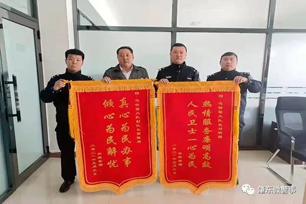 在黨史學(xué)習(xí)教育和隊伍教育整頓中,巡特警大隊始終將人民群眾放在心中最高位置,切實將“我為群眾辦實事”走深走實。近日,巡特警大隊收到肇東市居民關(guān)某送來的兩面印有“真心為民辦事 傾心為民解憂”“熱情服務(wù)廉明高效 人民衛(wèi)士一心為民”的錦旗,以表達巡特警隊員在短時間內(nèi)幫助其找回遺失物品表達感激之情。
