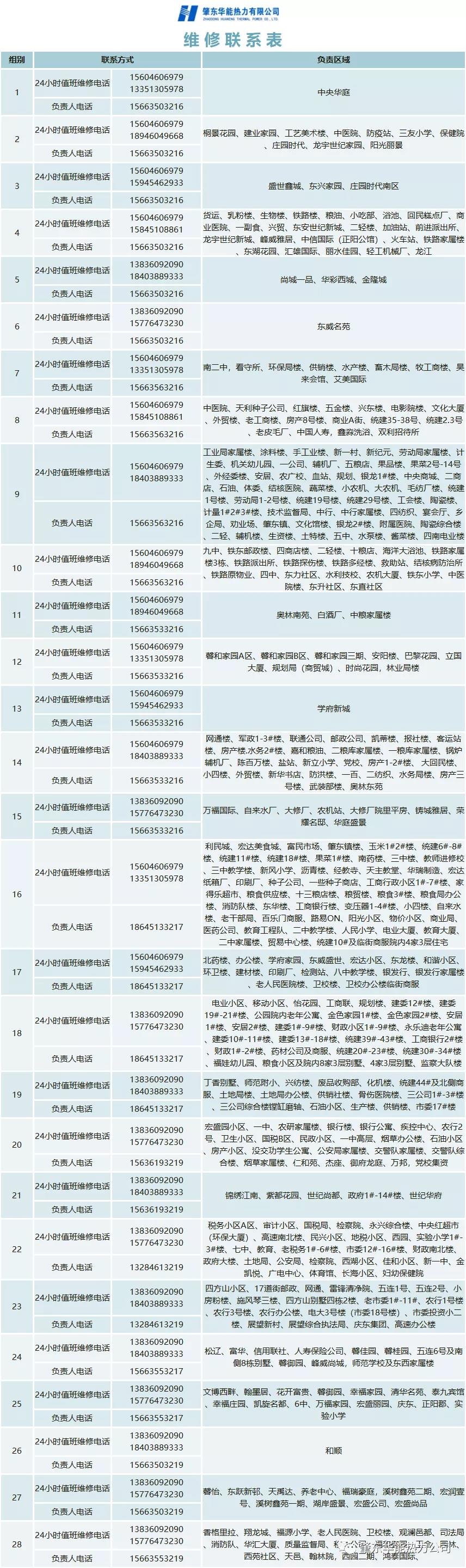 肇東華能公布肇東各小區(qū)24小時(shí)維修服務(wù)電話!