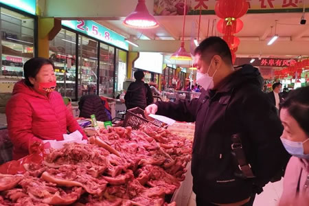 2022年3月2日,肇東市市場監(jiān)管局組織執(zhí)法抽檢人員對肇東市陽光農(nóng)貿(mào)市場進行監(jiān)督檢查。