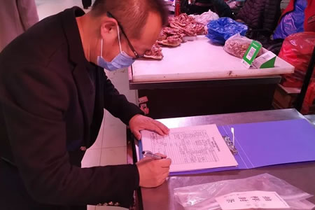 檢查中,執(zhí)法人員重點圍繞食品生產(chǎn)流通經(jīng)營者資質(zhì)是否齊全、是否落實索證索票、進貨查驗并記錄等方面進行檢查。抽檢人員現(xiàn)場對我市陽光農(nóng)貿(mào)市場肉制品專區(qū)節(jié)令食品豬頭肉進行了抽樣并送檢測機構(gòu)進行監(jiān)督檢驗。