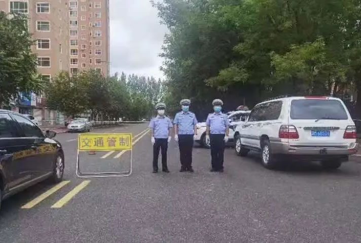 中考第一天,交警大隊執(zhí)勤民警提前上崗,在考點及周邊路段考試前一個小時實行交通管制,在考場外圍擺放錐桶、禁鳴提示牌等標識,禁止機動車經過時鳴笛,引導車輛繞行,確?紙鲋苓叚h(huán)境通暢、安靜。同時,加大對考點周邊路段的巡邏管控力度,指揮疏導交通,確?忌踩樌M出考場、群眾出行暢通。對考生和考試工作人員、車輛在前往考場途中交通受阻等情況,建立“綠色通道”,讓涉考車輛優(yōu)先通行。積極為需要幫助的考生提供應急救助服務,保證考生順利進入考場。