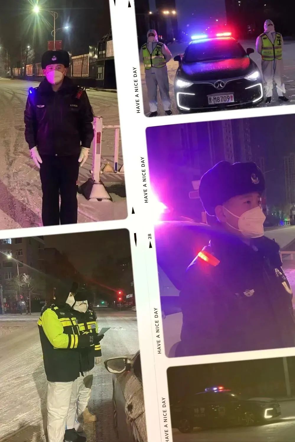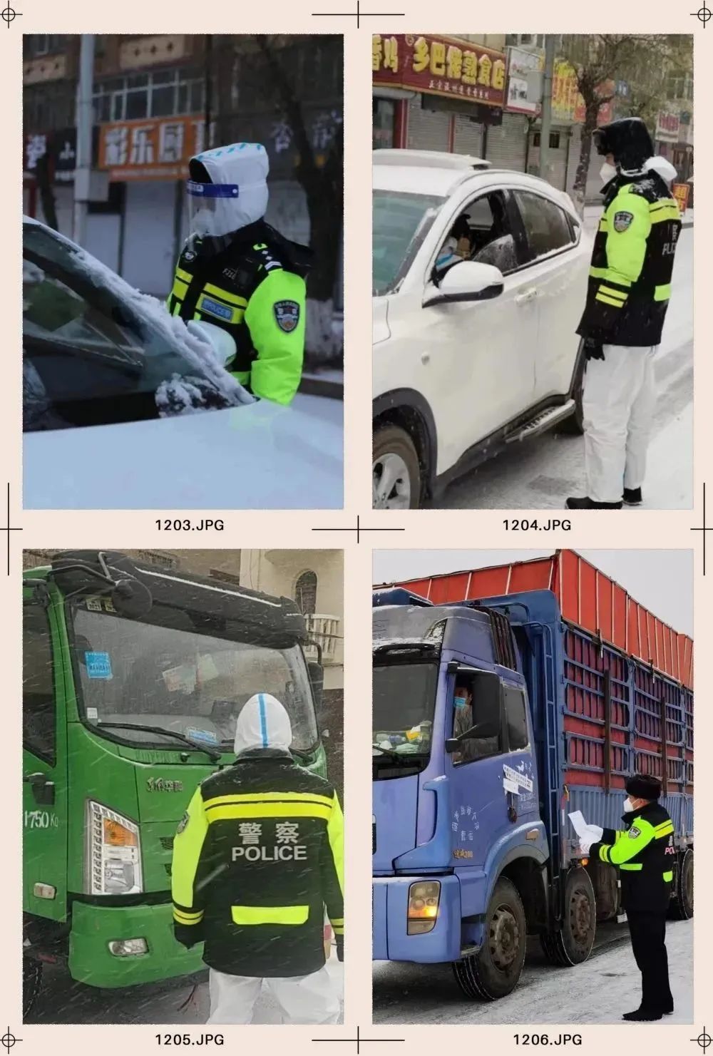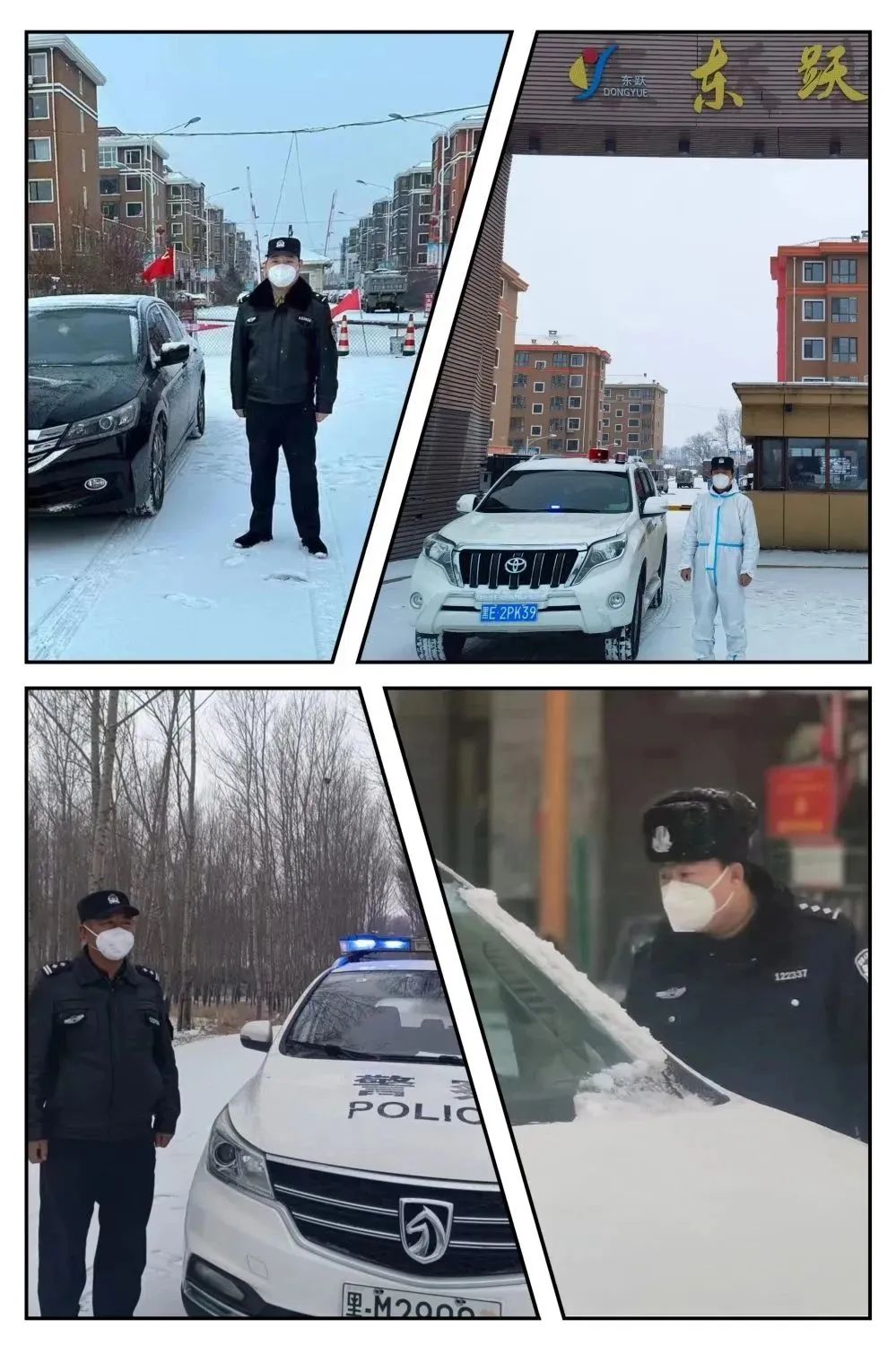 面對突如其來的惡劣天氣,肇東市公安局執(zhí)勤民輔警頂風(fēng)冒雪對相關(guān)車輛和人員耐心地宣傳疫情防控有關(guān)規(guī)定,在嚴(yán)厲打擊涉疫違法犯罪的同時(shí),不斷強(qiáng)化文明、理性、柔性執(zhí)法,讓群眾切實(shí)感受到公安機(jī)關(guān)執(zhí)法的溫度,贏得了肇東百姓的支持和認(rèn)可。在疫情防控卡點(diǎn),執(zhí)勤民輔警們依舊是一絲不茍,克服天氣寒冷等不利因素,對進(jìn)入城區(qū)的車輛和司乘人員嚴(yán)格按照防控工作要求,做好人員和車輛信息登記,嚴(yán)防疫源攜入。交警大隊(duì)執(zhí)勤民輔警冒雪堅(jiān)守各執(zhí)勤崗,嚴(yán)格執(zhí)行疫情防控期間交通管控措施。各城鄉(xiāng)派出所執(zhí)勤民輔警認(rèn)真執(zhí)行疫情防控任務(wù),冒雪堅(jiān)守崗位開展執(zhí)勤管控工作,全力奮戰(zhàn)在疫情防控一線,確保疫情防控工作有序開展。自疫情臨時(shí)管控以來,肇東公安民輔警“逆行”而上,勇敢的奮戰(zhàn)在防控一線,彰顯了無私奉獻(xiàn)的精神和義無反顧的擔(dān)當(dāng),用實(shí)際行動(dòng)全力守護(hù)著人民群眾的平安。