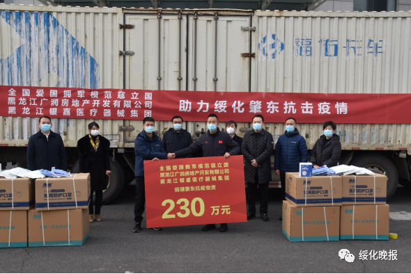 11月24日,正值肇東市抗擊新冠疫情關(guān)鍵時(shí)刻,肇東籍企業(yè)家、立國(guó)集團(tuán)董事局主席寇立國(guó),攜手黑龍江銀嘉醫(yī)療器械集團(tuán)董事長(zhǎng)朱宏偉、黑龍江廣潤(rùn)房地產(chǎn)開(kāi)發(fā)有限公司董事長(zhǎng)馬麗,向肇東市捐贈(zèng)總價(jià)值230萬(wàn)元的防疫物資。