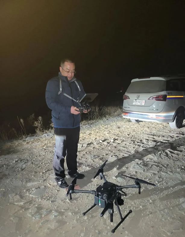 2月9日晚20時(shí)許,肇東鎮(zhèn)派出所接到轄區(qū)群眾徐某求助,家里的243只羊走失,耗費(fèi)多時(shí),終不見(jiàn)羊群蹤跡。實(shí)在沒(méi)有了辦法,想到了向派出所求助,于是就報(bào)了警,求助派出所幫忙尋找。接到求助后,所長(zhǎng)殷國(guó)輝立即組織輔警盧宏偉、劉超趕往群眾求助地點(diǎn),到達(dá)現(xiàn)場(chǎng)后,經(jīng)過(guò)分析現(xiàn)場(chǎng)情況和查看地形,所長(zhǎng)立即決定請(qǐng)求市局科信大隊(duì)無(wú)人機(jī)支援。