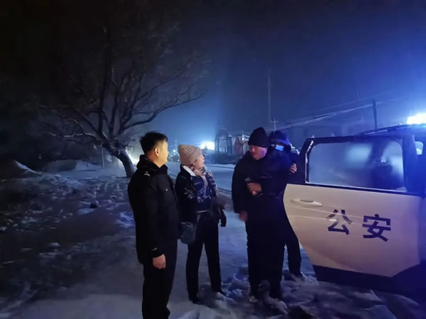 3月14日晚9時許,天空飄著鵝毛般的大雪,安民派出所接到群眾報警稱:“在安民鄉(xiāng)安民村李家圍子屯,301國道東側(cè),有一名頭戴黑色帽子,身穿黑色棉服和黑色褲子的男子,不知道什么原因躺在路邊”,接到報警后,民警楊忠孝立即帶領(lǐng)輔警張興宇趕赴報警現(xiàn)場,經(jīng)過現(xiàn)場了解,發(fā)現(xiàn)該人為智障人員,無法準確有效地表達個人信息,且身上也沒有任何能證明身份信息的證件,具體住址也說不清楚。只能斷斷續(xù)續(xù)的表達自己和母親的名字,但無法提供聯(lián)系方式,經(jīng)過民警再三溝通,他說是在廣場上扭秧歌,扭完后想回家,在經(jīng)過一個天橋后,迷失了方向,就走到這來了。民警楊忠孝分析,該人應該是從市區(qū)來的,因為他提到天橋,安民所轄區(qū)最近的城市就是安達市,他應該是從安達市方向來的,將群眾領(lǐng)到安民派出所后,輔警張興宇為他買了熱乎的食物并安撫其情緒,通過工作得知該人叫郭某東是安達市朝陽區(qū)居民,楊忠孝立即與安達市朝陽派出所取得聯(lián)系,安達市朝陽派出所工作人員表示,郭某東的父母已向派出所報警,說孩子已走失一下午了,父母很著急,我們這邊也出動警力正在幫忙尋找,民警楊忠孝與他的父母取得聯(lián)系后,告知人已安全找到,看著天空飄下的大雪,楊忠孝決定和張興宇用警車把郭某東安全送回家里,以免發(fā)生其他意外。