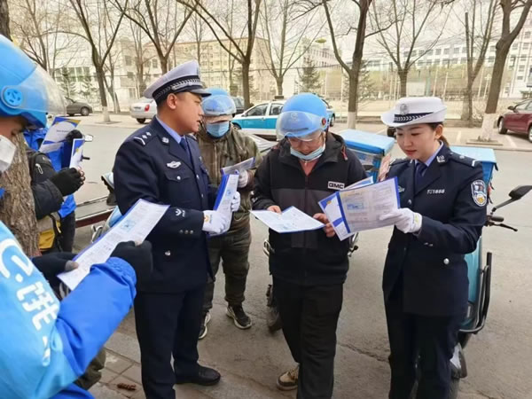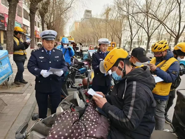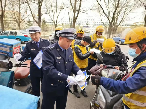 在快遞外賣企業(yè)及人員聚集場所,民警以發(fā)放宣傳資料、粘貼《黑龍江省電動車管理條例》宣傳單等方式,詳細講解電動車的種類、認定標準、電動車登記程序等通行規(guī)定。提醒廣大群眾在騎乘電動車時要正確佩戴合格的安全頭盔,杜絕闖紅燈、逆向行駛、酒后駕駛等各類交通違法行為。引領(lǐng)廣大群眾遵守電動車通行規(guī)定,摒棄交通陋習,做到守法規(guī)知禮讓,安全文明出行。