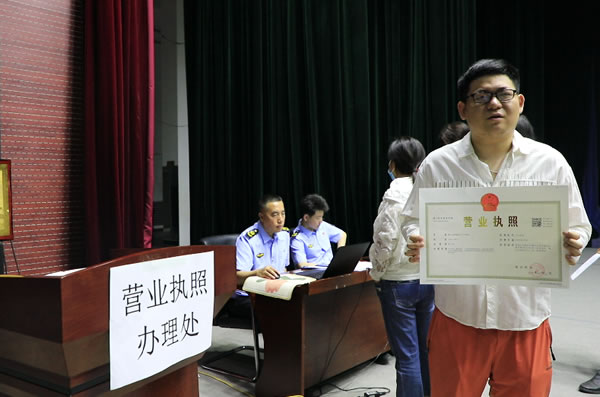 針對(duì)個(gè)體工商戶需要紙質(zhì)營(yíng)業(yè)執(zhí)照的要求,立即將紙質(zhì)營(yíng)業(yè)執(zhí)照打印送到小餅節(jié)個(gè)體經(jīng)營(yíng)者手中,做到現(xiàn)場(chǎng)秒申請(qǐng),大廳秒審批。