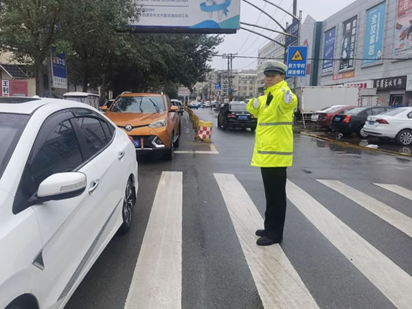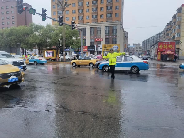 雨中,民警在轄區(qū)學(xué)校護(hù)學(xué)崗增派警力,指揮過往車輛,對(duì)接送學(xué)生的車輛進(jìn)行快速疏導(dǎo),護(hù)送學(xué)生安全過馬路,保障學(xué)生上下學(xué)交通安全及周邊道路交通安全有序暢通。全體執(zhí)勤民輔警縱然全身濕透,也沒有一絲怠慢,在各自的崗位上不畏風(fēng)雨,恪盡職守,全力保障雨天轄區(qū)道路安全暢通和廣大群眾的出行安全。