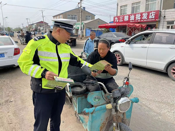 大隊民輔警以高度負(fù)責(zé)的工作態(tài)度,走進(jìn)各鄉(xiāng)鎮(zhèn)村屯,在村干部的積極支持下,包保民輔警挨家挨戶登記機小型客車、低速載貨汽車、農(nóng)用車等機動車輛及駕駛?cè)诵畔ⅰ槿罕姲l(fā)放《秋收道路交通安全須知》、《一盔一帶》、《遠(yuǎn)離酒駕、平安出行》等宣傳資料,面對面宣講法律法規(guī)和安全常識,解釋農(nóng)民朋友提出的疑問,解決實際存在的問題。對農(nóng)村秋收使用的四輪車、農(nóng)用機械等車輛進(jìn)行檢查,對反光標(biāo)識缺失、失效的車輛,當(dāng)場免費為其粘貼。通過零距離接觸、心貼心交流,直接拉近了警民關(guān)系,為保秋收、壓事故打下良好基礎(chǔ)。