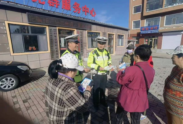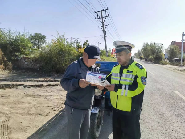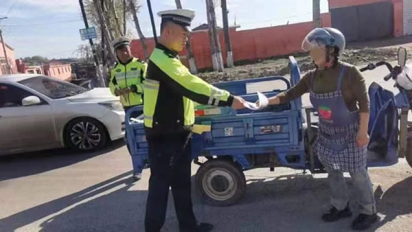 為扎實推進(jìn)道路交通事故預(yù)防“減量控大”及“保秋收壓事故”工作,切實增強(qiáng)農(nóng)村地區(qū)人民群眾的交通安全意識,有效預(yù)防和減少農(nóng)村道路交通安全事故的發(fā)生。肇東市公安局交警大隊“雙節(jié)”期間全體取消休假,大部分民輔警走進(jìn)農(nóng)村,持續(xù)開展交通安全宣講活動,讓文明交通之風(fēng)吹遍農(nóng)村的每一處角落。