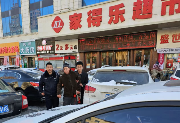 1月22日11時(shí)許,紅旗派出所接到轄區(qū)家得樂超市工作人員報(bào)警稱超市內(nèi)有一名老人找不到家了,接到報(bào)警后紅旗派出所教導(dǎo)員楊玉軍立即帶領(lǐng)輔警張國(guó)健、李建成到達(dá)現(xiàn)場(chǎng),向老人耐心細(xì)致地詢問情況,可老人只記得自己的名字及家住肇東市二糧庫(kù)樓,并無(wú)法記清具體單元及門牌號(hào),且身上沒有任何證件、手機(jī)及家屬聯(lián)系方式,行動(dòng)也十分不便。