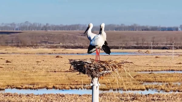 東方白鸛是國家一級保護動物,該物種已被列入《國家保護的有益的或者有重要經(jīng)濟、科學研究價值的陸生野生動物名錄》。由于東方白鸛性情機警而膽怯,且現(xiàn)在為筑巢期,更是害怕驚擾,所以記者只能在濕地工作人員的引導下通過無人機遠遠的拍下他們優(yōu)雅美麗的身影,今年濕地東方白鸛數(shù)量的大幅增加無疑是對該區(qū)域生態(tài)環(huán)境的極大信任和認可。