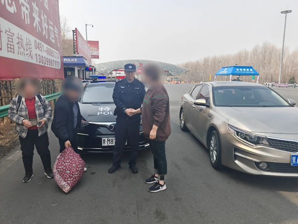 隨后,巡特警隊(duì)員將走失人員董某送到哈大高速哈爾濱收費(fèi)站出口處,董某與家屬團(tuán)聚,家屬看到董某被肇東警察找到了,激動的握著巡特警隊(duì)員的手連連道謝。