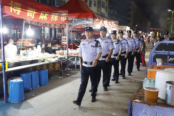 夜幕降臨,城市的燈火逐漸亮起,警燈閃爍如炬,藏藍(lán)身影井然有序穿梭在街頭巷尾的每一個(gè)角落,一幅守護(hù)夏夜平安的畫卷持續(xù)在肇東市區(qū)鋪開……