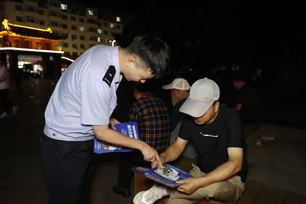 民警利用夜間群眾休閑納涼的有利時(shí)機(jī),通過集中宣傳和定點(diǎn)講解等方式,提醒群眾增強(qiáng)安全防范意識(shí)。同時(shí),充分發(fā)揮社區(qū)群眾聚集多、消息傳播快、宣傳精度高優(yōu)勢(shì),發(fā)放宣傳資料把“五防”知識(shí)送上門、讓安全知識(shí)深入人心。