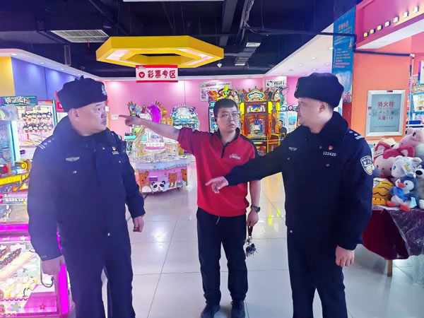 民輔警針對(duì)游戲廳、網(wǎng)吧、劇本殺、密室逃脫等密閉場(chǎng)所和全市商場(chǎng)、學(xué)校、醫(yī)院、廣場(chǎng)、公園等人員密集場(chǎng)所開展全要素安全檢查,重點(diǎn)檢查消防安全、治安管理制度是否健全、是否開展日常安全檢查并組織安全培訓(xùn)和應(yīng)急演練,員工是否熟悉應(yīng)急知識(shí),是否設(shè)置疏散路線示意圖、安全出口、疏散通道、安全提示等指示標(biāo)志,是否存在外窗被封堵或被廣告牌等遮擋,滅火器、應(yīng)急照明燈具等消防設(shè)施是否正常,疏散通道、樓梯間、疏散門、安全出口是否通暢。室內(nèi)外監(jiān)控設(shè)施覆蓋、維護(hù)、運(yùn)行情況,聯(lián)動(dòng)報(bào)警裝置靈敏情況、室外場(chǎng)所防沖撞硬隔離設(shè)施設(shè)置情況,確保不留死角,萬無一失。