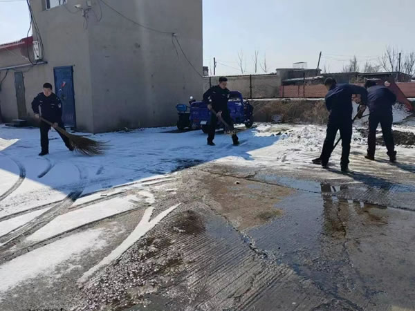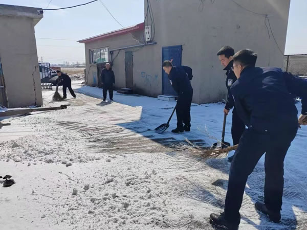 受強冷空氣影響,3月26日肇東市普降大雪。由于氣溫原因,積雪大面積融化。3月27日,尚家派出所民警了解到轄區(qū)殘疾獨居老人家中積雪融化,存在出行安全隱患。于是,尚家派出所迅速組織警力,由“春苗”帶教民警帶領(lǐng)4名“春苗新警”攜帶鐵鍬、掃帚" />