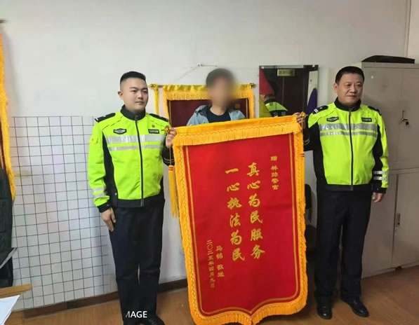 交警真心為民服務(wù) 群眾感謝敬獻(xiàn)錦旗