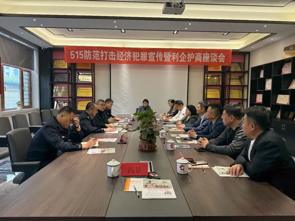 為了進(jìn)一步推進(jìn)宣傳活動,副局長武立志帶領(lǐng)經(jīng)偵大隊民輔警與市工商聯(lián)召開“5.15”防范打擊經(jīng)濟(jì)犯罪宣傳利企護(hù)商座談會,會上武立志同經(jīng)偵民警圍繞如何保護(hù)企業(yè)權(quán)益、護(hù)航企業(yè)發(fā)展,堅持源頭防范侵害企業(yè)的經(jīng)濟(jì)犯罪,動態(tài)聯(lián)合企業(yè)進(jìn)行預(yù)警,同時經(jīng)偵民警對企業(yè)提出的關(guān)于經(jīng)濟(jì)犯罪的疑問一一進(jìn)行解答,并為企業(yè)講解了非法集資、組織、領(lǐng)導(dǎo)傳銷、職位侵占、合同詐騙等經(jīng)濟(jì)犯罪的典型案例,對作案手法、作案特點進(jìn)行了詳細(xì)的講解,提高企業(yè)對經(jīng)濟(jì)犯罪的防范能力,從根本上遏制經(jīng)濟(jì)犯罪的發(fā)生。