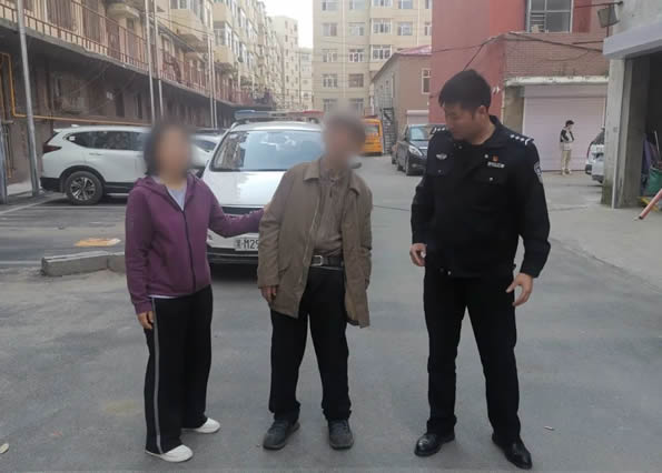 接警后,尚家派出所工作人員立即出警,到現(xiàn)場(chǎng)后,發(fā)現(xiàn)老人已被路過(guò)的好心人攙扶到路邊,上前詢問(wèn)老人情況,老人語(yǔ)言不清,說(shuō)不清情況,身上的定位器電量耗盡。派出所工作人員王立濤、李海洋將老人攙扶到警車(chē)?yán),詢?wèn)老人家庭情況及住址,老人耳聾,多次詢問(wèn)后,老人說(shuō)自己叫董道良,自己二兒子叫董平,現(xiàn)在已退休,自己在肇東市林業(yè)局樓居住,王立濤、李海洋駕車(chē)將老人送到肇東市八道街林業(yè)局家屬樓,經(jīng)向樓區(qū)住戶詢問(wèn),稱老人在四單元401室居住,李海洋邊上樓敲開(kāi)401室的房門(mén),詢問(wèn)是否有老人走失時(shí),老人的兒媳激動(dòng)的說(shuō)有有,我公公早上去公園溜達(dá)時(shí),一直沒(méi)有回家,放在身上的定位器停止工作,家里人都急壞了,一直尋找沒(méi)有找到,正準(zhǔn)備打電話報(bào)警求助,聽(tīng)到派出所工作人員將老人送回來(lái)了,兒媳快步來(lái)到樓下,來(lái)到公公身邊,對(duì)派出所工作人員 一個(gè)勁的表示感謝,嘴里說(shuō)著,謝謝你們了,真的太感謝了!看見(jiàn)老人安全到家了,囑咐完家屬后,王立濤、李海洋駕車(chē)默默的離開(kāi),車(chē)后面的老人兒媳還一直揮著手送別。