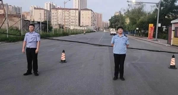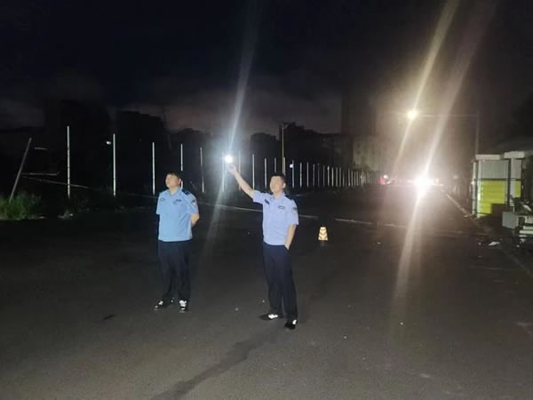 由于該路段照明設(shè)施少,電線桿倒伏位置特殊,現(xiàn)場十分危險,為防止車輛看不見電線而發(fā)生交通事故,在維修人員未到達現(xiàn)場之前,兩名民警分工明確,一人在來車方向200米處設(shè)置警示標志,用喊話器喊話,引導(dǎo)小型車輛從附近小巷道路繞行,大型車輛則在安全區(qū)域等候;另一人負責維護現(xiàn)場秩序,防止群眾靠近危險區(qū)域,并耐心向受阻群眾解釋情況。