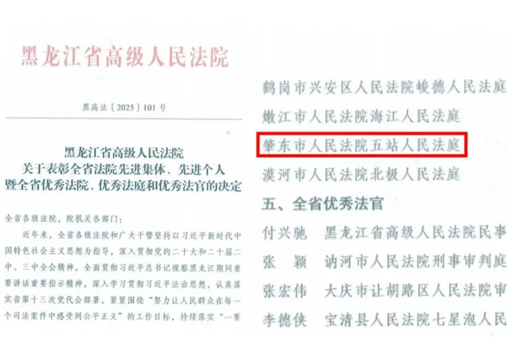 近日,黑龍江省高級人民法院公布《關(guān)于表彰全省法院先進(jìn)集體、先進(jìn)個(gè)人暨全省優(yōu)秀法院、優(yōu)秀法庭和優(yōu)秀法官的決定》,肇東市人民法院五站人民法庭獲評“全省優(yōu)秀法庭”表彰。