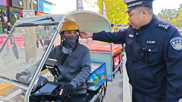 行動(dòng)中,民輔警在城區(qū)電動(dòng)車、摩托車通行集中路段,對(duì)摩托車、電動(dòng)車逐輛進(jìn)行檢查,對(duì)未正確佩戴安全頭盔的騎乘人員,現(xiàn)場(chǎng)講解正確佩戴頭盔的方法及佩戴頭盔的重要性和必要性。對(duì)未佩戴安全頭盔的騎乘人員進(jìn)行教育、警告。并當(dāng)面宣講交通安全法律法規(guī)等安全知識(shí),詳細(xì)剖析駕乘電動(dòng)車、摩托車不佩戴安全頭盔的嚴(yán)重危害和后果。尤其針對(duì)外賣、快遞等配送人員,民輔警在街頭逐一檢查車輛運(yùn)行手續(xù)和安全性能、頭盔是否符合國(guó)家標(biāo)準(zhǔn)等情況,明確要求快遞配送人員必須發(fā)揮重點(diǎn)行業(yè)示范引領(lǐng)作用,時(shí)刻戴好安全頭盔,遵守交通法規(guī),做好交通安全的帶頭人。